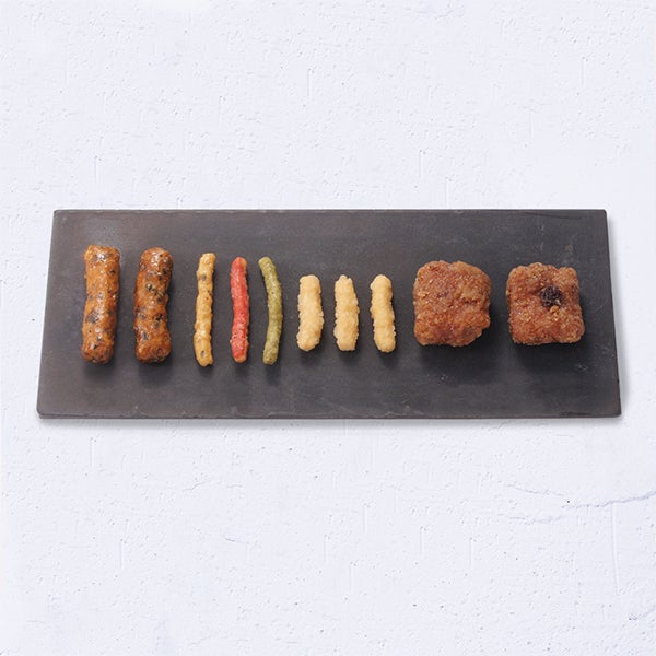 小麦粉(国内製造)、植物油脂、砂糖、水飴、胡麻、脱脂粉乳、乾燥赤しそ(赤しそ、食塩)、オートミール、アオサ、イースト/着色料(ベニコウジ、紅花黄、クチナシ)、クエン酸
